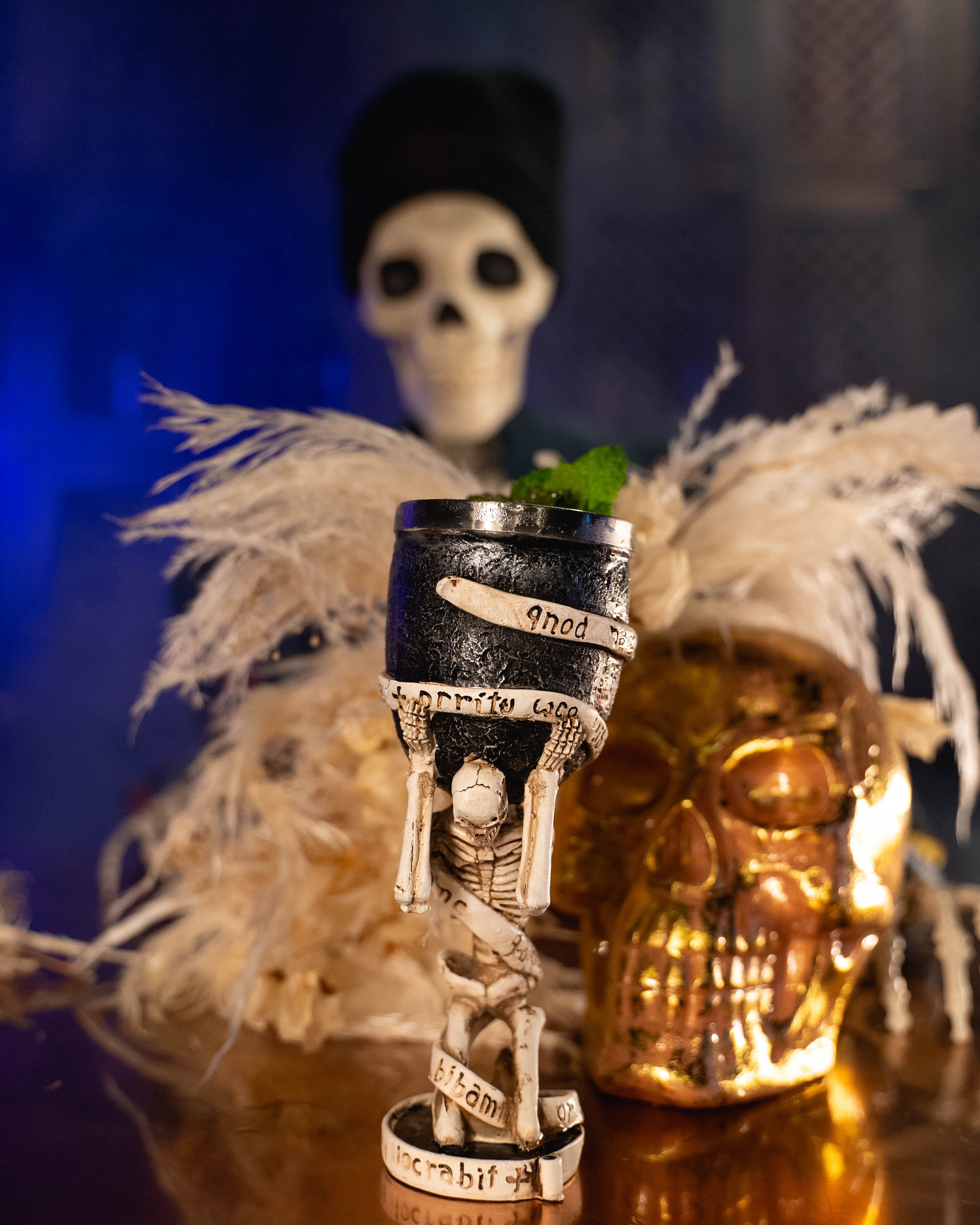 is LIVE!Every October, Weiss welcomes a few extra spirits to haunt the speakeasy as it transforms into an immersive Halloween-themed temple of drink. You'll scream for the hair-raising cocktails served out of all kinds of bubbling cauldrons and pumpkins and skulls that cast ominous shadows across the room. In true Weiss fashion, the creepy vibe is full of spectacle, smoke, and surprise, instilling child-like wonder and mischief into an adult-only guest experience. So clink your glass to all things that go bump in the night, and join us at Halloweiss for a hauntingly good limited time!